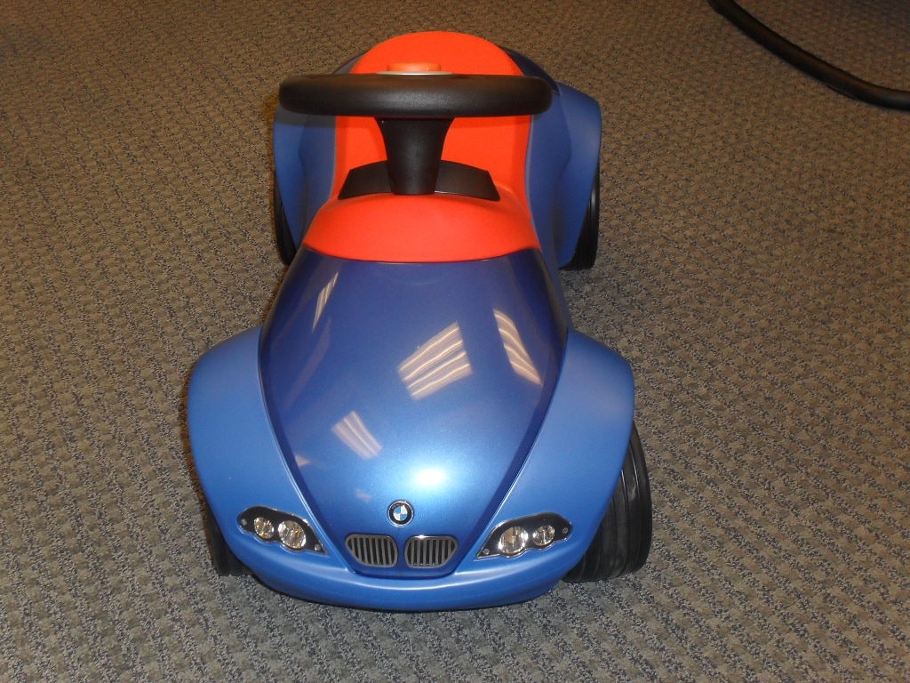 Just when you thought BMW couldn't make a smaller car, here comes the newest entry-level single seat Grayson BMW. Powered by the revolutionary toddler walk drive train pumping an impressive 1-baby power, the Baby Bimmer is constructed of light-weight composites and is equipped with real rubber tires, a speedometer and a tach in the cockpit. And, since the guys and gals who drive the current line-up of BMWs rarely employ the brakes anyway, the automaker decided to just leave them off this exciting new model. Although anyone can take home a new Baby BMW, the ideal driver is a racer between the ages of six months and three years-old.