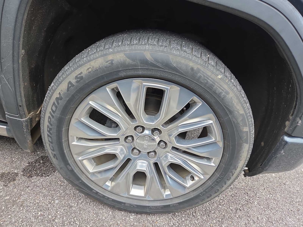 DENALI ULTIMATE PACKAGE includes (CWM) Technology Package, (PDJ) Driver Alert Package II, (CF5) sunroof, (BRS) GMC MultiPro Power Steps, (SFE) wheel locks, LPO and (SMF) 22 multi-dimensional polished aluminum wheels, ENGINE, 6.2L ECOTEC3 V8 (420 hp [313 kW] @ 5600 rpm, 460 lb-ft of torque [624 Nm] @ 4100 rpm); featuring all-new Dynamic Fuel Management that enables the engine to operate in 17 different patterns between 2 and 8 cylinders, depending on demand, to optimize power delivery and efficiency, TECHNOLOGY PACKAGE includes (UVS) HD Surround Vision, (DRZ) Rear Camera Mirror, (UVN) Bed View Camera and (UV6) Multicolor 15 Diagonal Head-Up Display, DRIVER ALERT PACKAGE II includes (UEU) Forward Collision Alert, (UHX) Lane Keep Assist/Lane Departure Warning, (UHY) Automatic Emergency Braking, (UKJ) Front Pedestrian Braking, (TQ5) IntelliBeam headlamps, (KSG) Adaptive Cruise Control-Camera and (UE4) Following Distance Indicator, AUDIO SYSTEM, PREMIUM GMC INFOTAINMENT SYSTEM WITH NAVIGATION AND 8 DIAGONAL COLOR TOUCH-SCREEN, INCLUDES MULTI-TOUCH DISPLAY, AM/FM STEREO Bluetooth® streaming audio for music and most phones; featuring Android Auto® and Apple CarPlay® capability for compatible phones, advanced voice recognition, in-vehicle apps, personalized profiles for infotainment and vehicle settings. Includes greater memory (Note: (PZ8) Hitch Guidance with hitch view is included with trim.) (STD), TRANSMISSION, 10-SPEED AUTOMATIC, ELECTRONICALLY CONTROLLED with overdrive and tow/haul mode. Includes Cruise Grade Braking and Powertrain Grade Braking (STD). GMC Denali with Dark Sky Metallic exterior and Jet Black interior features a 8 Cylinder Engine with 420 HP at 5600 RPM*.